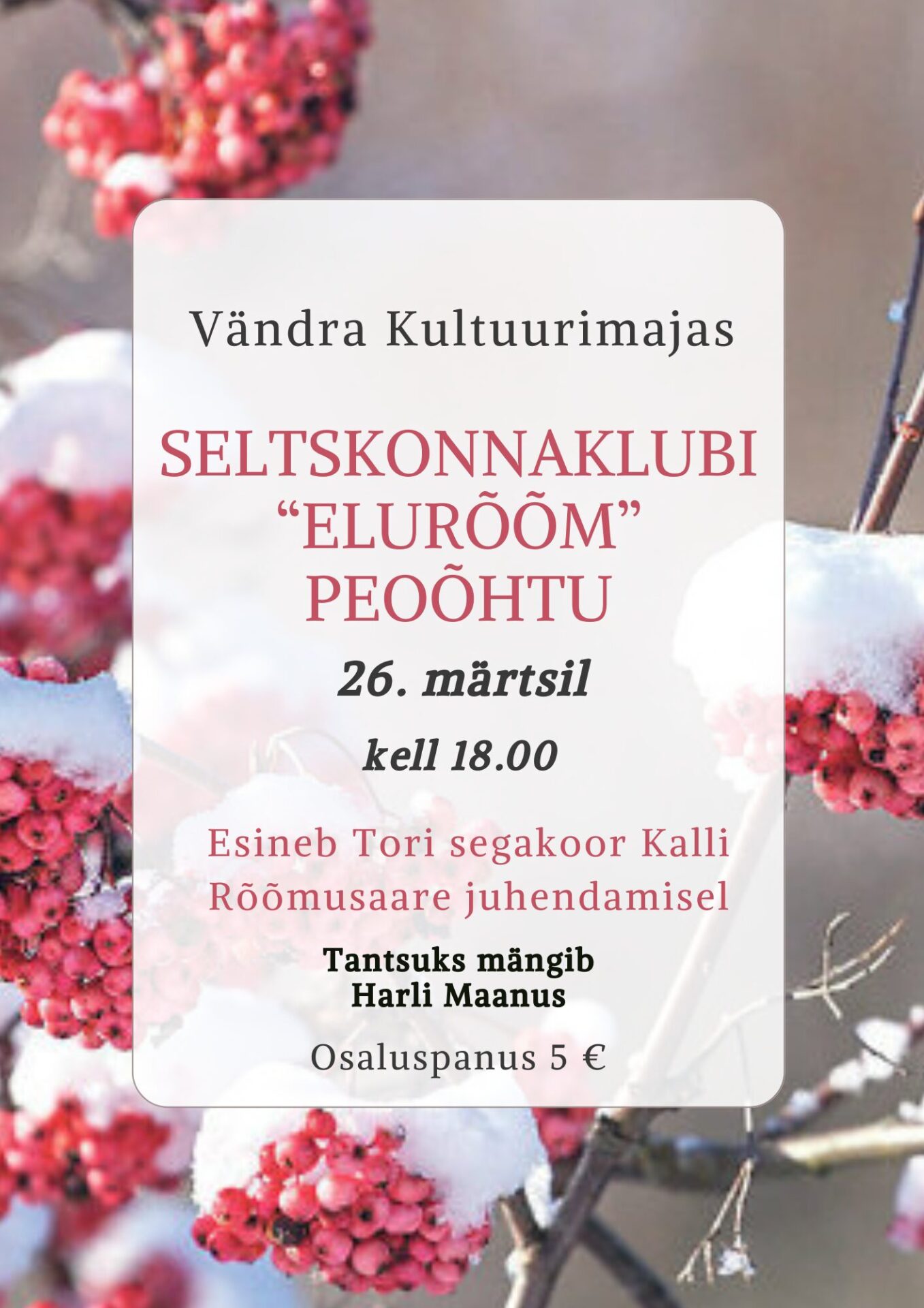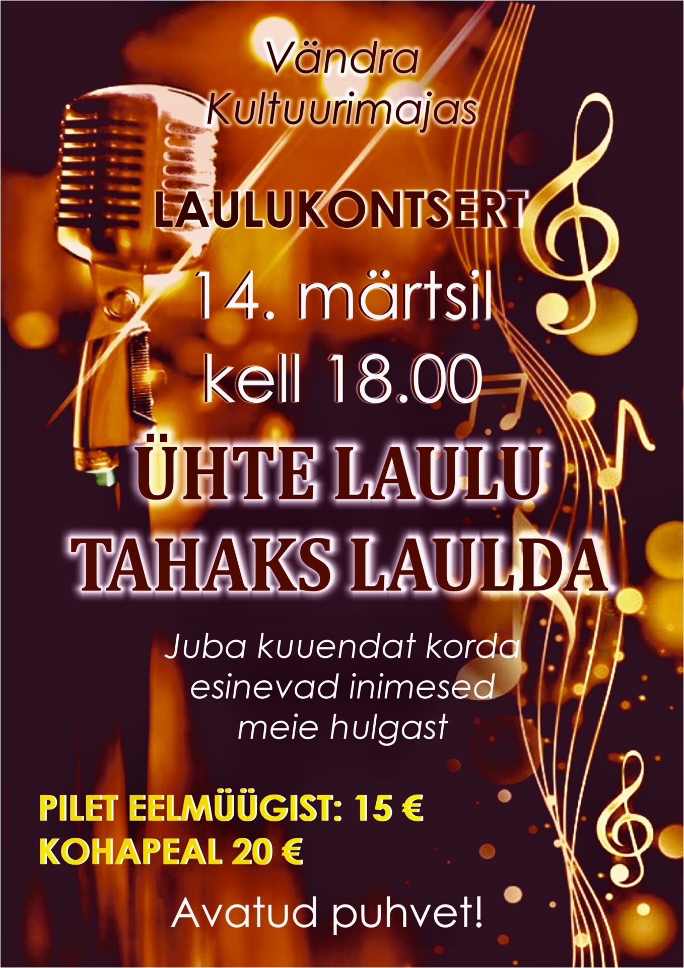 Piletid on saadaval alates 14. oktoobrist Piletilevis ja Vändra kultuurimajas. Lüdigi saali kevadhooaeg 2025 Hooaja avakontsert 11. jaanuaril kell 19.00 Lüdigi saalis Puuluup Ramo Tedre Marko...