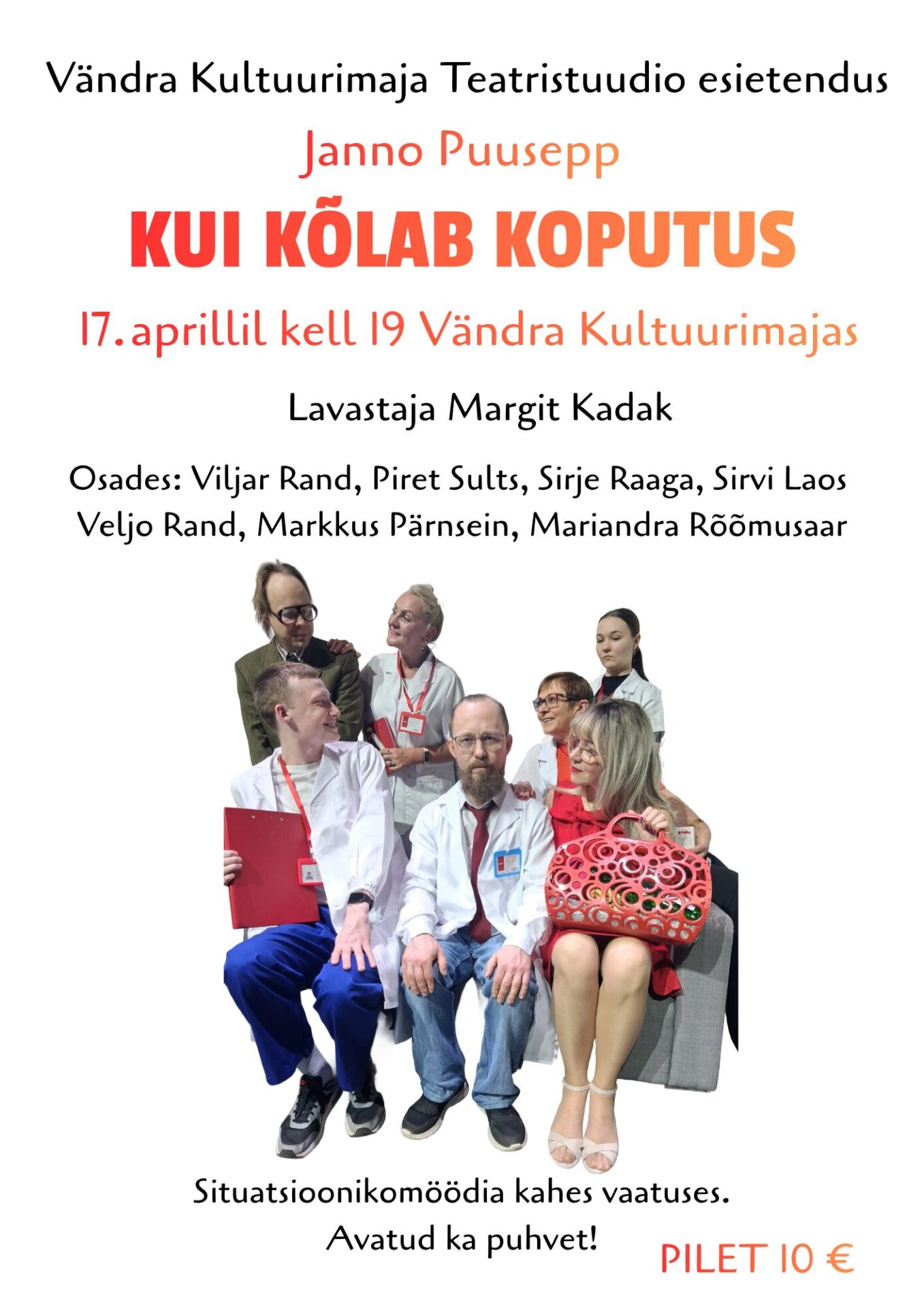 Sügishooaeg 2024 piletid tulevad Piletilevisse müüki 12. aprillil kell 10.00 Kultuurimajast saab pileteid osta 12. aprillil kell 10.00- 13.00 ning õhtul Lüdigi saalis enne käesoleva hooaja...